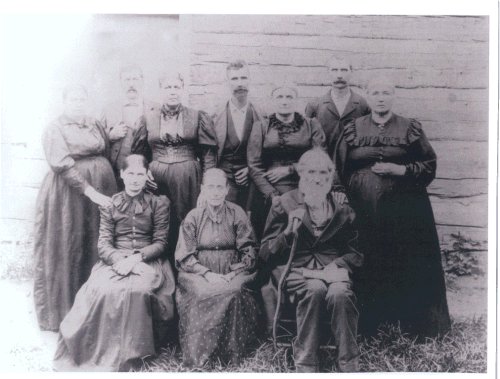 Reverend John Neal born in 1816 in Miami County, Ohio moved to Clay County in 1835. He contributed his full share until his death towards the intellectual and moral progress of this part of the state and until his death, January 29,1897, at the venerable age of eighty-one years, was deeply interested in everything pertaining to the welfare of town and county. He married Elizabeth Love and had twelve children, ten of which attained maturity. Pictured from left to right: Front row: Susan Kathryn, Elizabeth, Rev. John Back Row: Sarah Elizabeth, John Addison, Barbara, Elihu Peter, Louisa, Wilson, and Amanda 1896 Reverend John was 80 years old.