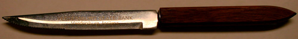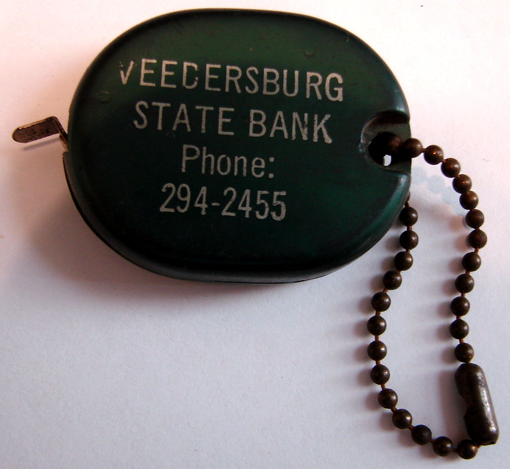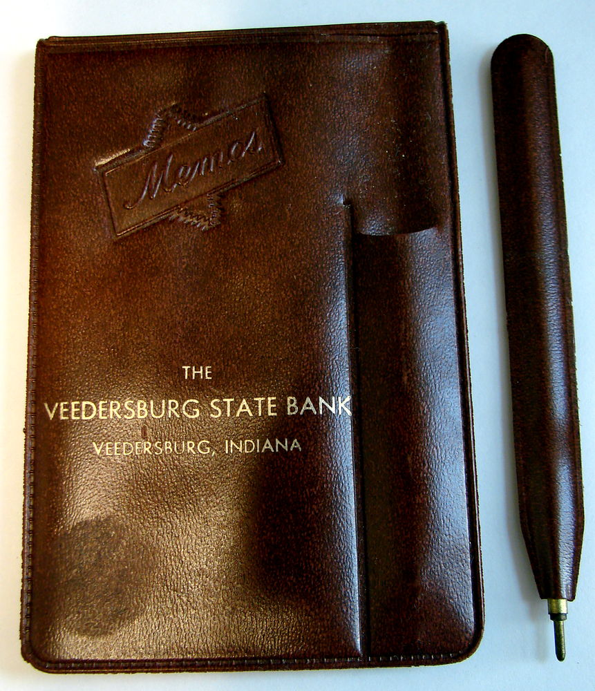 VEEDERSBURG STATE BANK had a number of promotional items; A "Memo Book with a Pen", A "Tape Measure", A complimentary "Steak Knife"