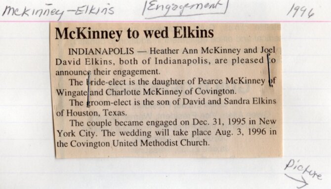Elkins, Joel David and Heather Ann McKinney - Fountain County INGenWeb Project