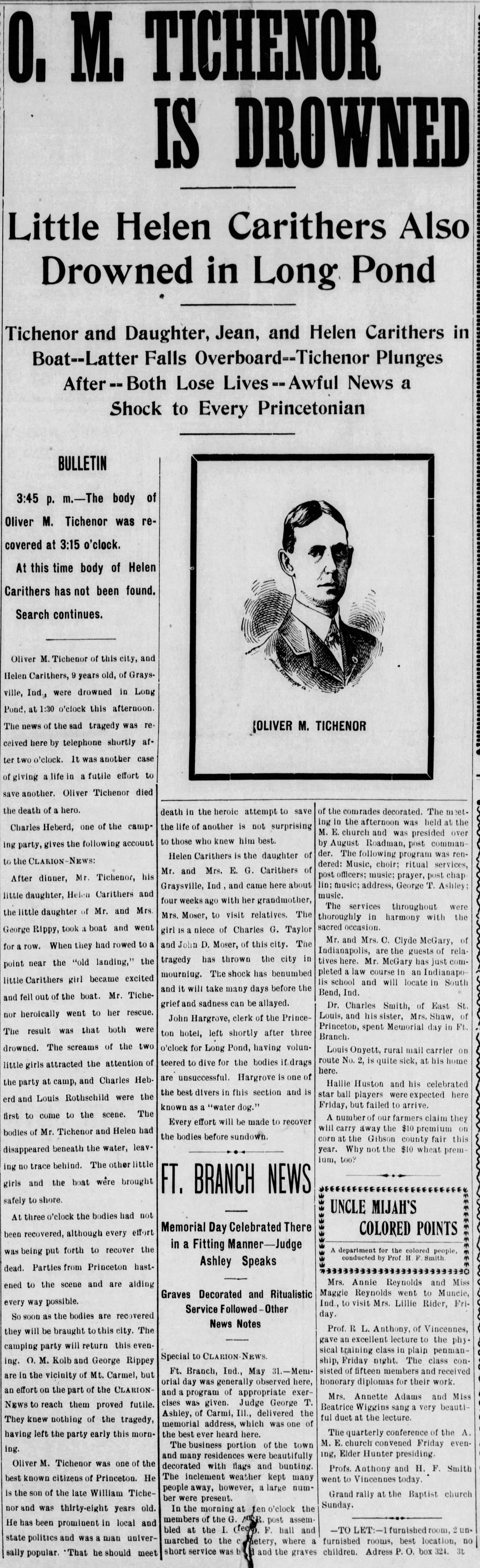 Her death certificate indicates that Helen Tichenor was buried at Graysville, IN (also the place of her birth); unable to locate the grave however. |