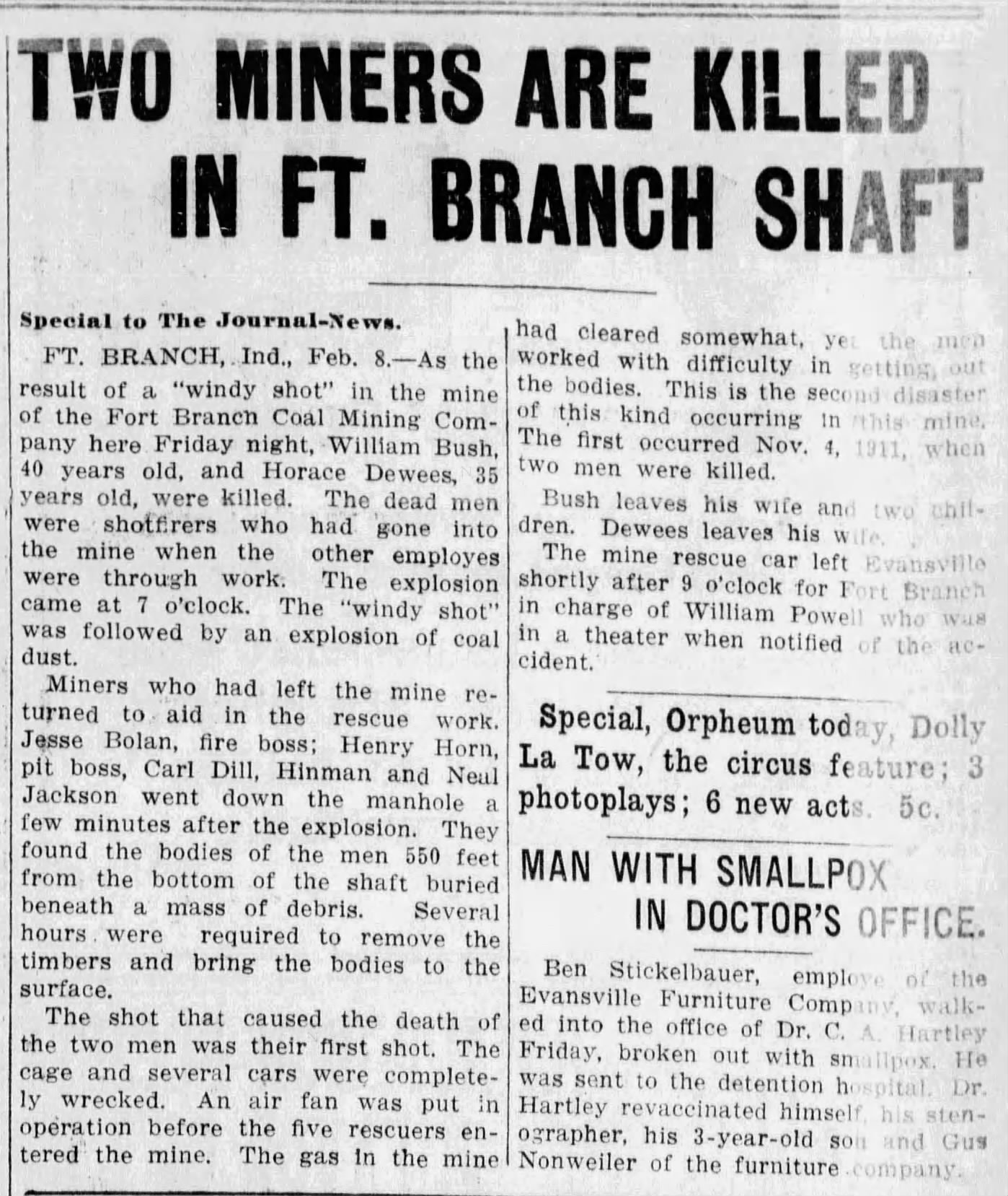 4678 From the Evansville Journal, 8 Feb 1913 |