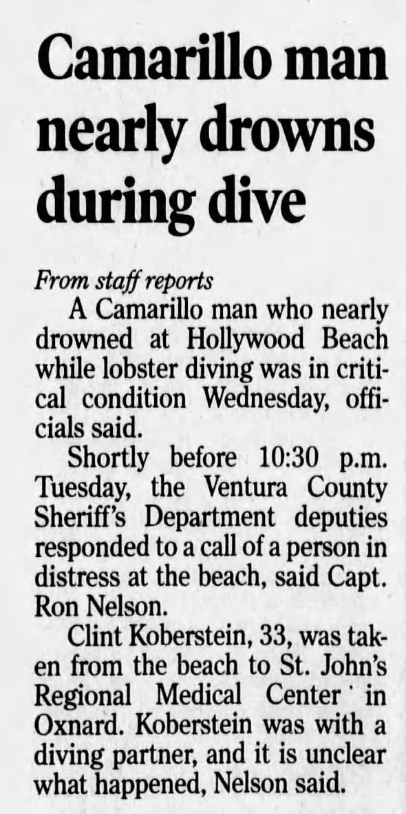 Died at Oxnard, CA of injuries sustained in a lobster diving accident (exact circumstances unclear).