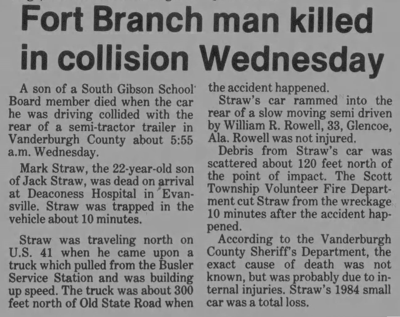 Husband of Agnes G (SUMMERS) STRAIN, 1st, married 19 Oct 1892; and Nina (WOODMAN) STRAIN, 2nd, married 25 Nov 1896 in Knox County, Indiana.