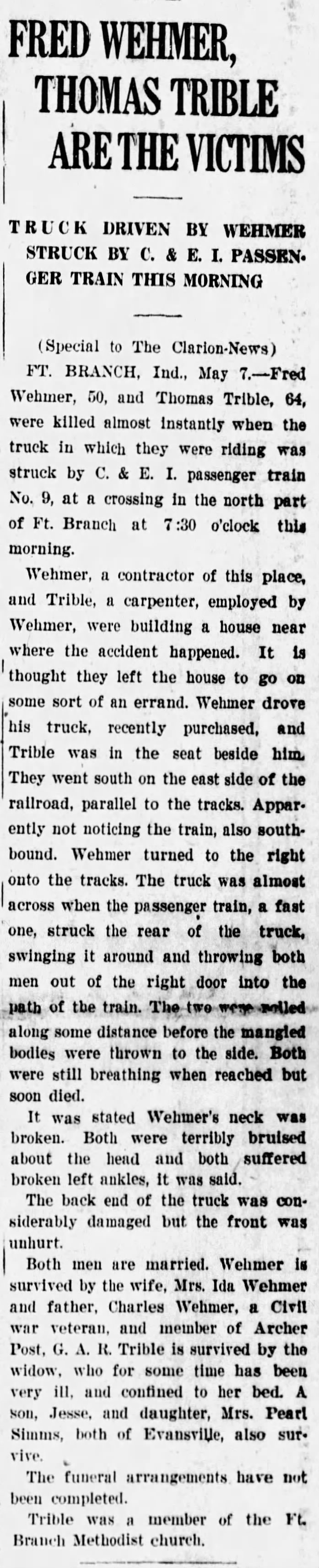 18 Apr 1912. Son of Charles W & Catherine "Kate" (KEEKER) WEHMER |