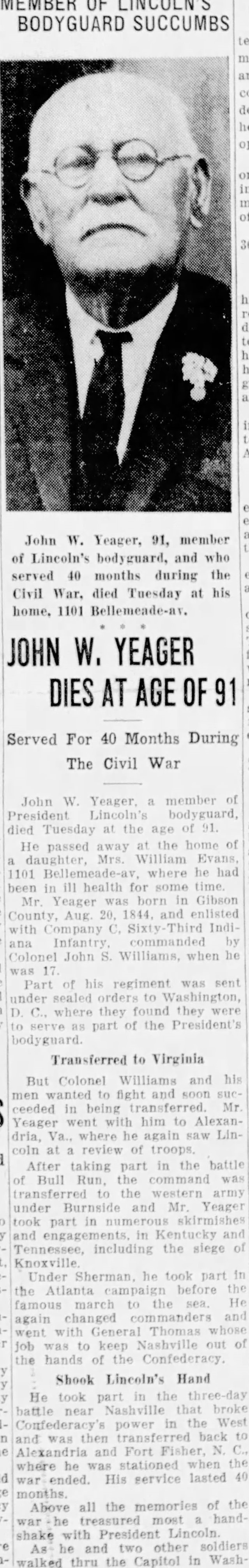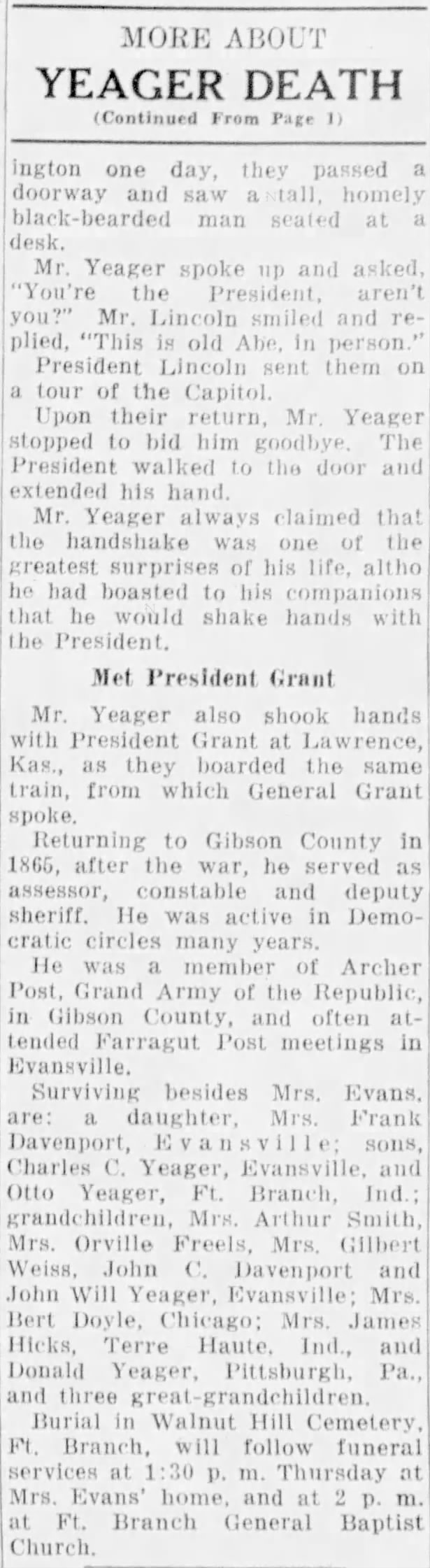 of Robbie (ALLSUP) YEAGER. Married Son of George E & Carrie (TOWNSLEY) YEAGER. Indiana,
