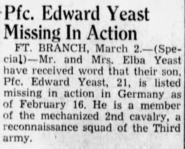 Son of Elba & Anna L (YEAST) YEAST. Pfc.,
