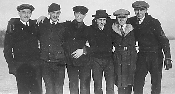 The men in the picture are, from left to right: Melburne RAPP, Jim KROH, Norman STRIEBY, Joel WILT, Lyle WILT, Art EVANS