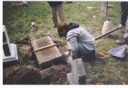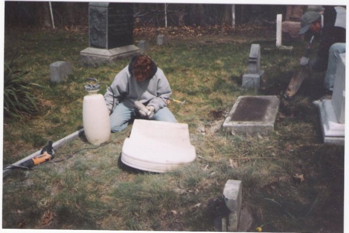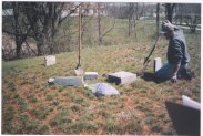 Mark Davis with the assistance of Helen Wildermuth repaired stones at Rossburg and Shippeeburg Cemeteries on the week of April 11, 2004. Also on hand was Pat Harris who is a member of the Pioneer Cemetery Commission and also is a part of our La Porte County Indiana Cemetery and Research Association.
