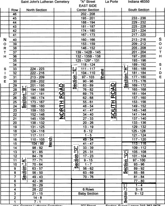 Church Cemetery Records - South Sections "H" lotsMap of St. John's Cemetery in Centre Township