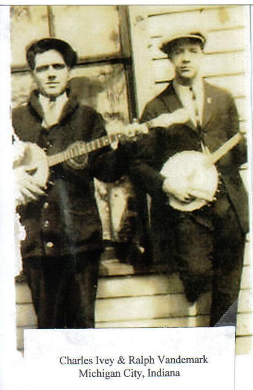 | Ora Della (Julian) Vandemark. Ora Della and Hollis Vandemark are buried in Greenwood Cemetery. | Charles Ivey & Ralph Vandemark playing the banjos. I got this photo from Henry & Hazel Ivey. Henry is the son of Charles & Stella Ivey. |
