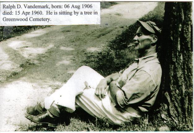 Vandermark b. 6 Aug 1906 d. 15 Apr 1960 shown in photo sitting and leaning against tree in Greenwood Cemetery |