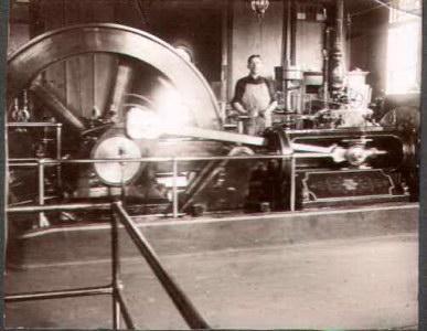 Albert Theodore August Voss Immigrated from Schwastorf, Germany in 1890 to LaPorte, Indiana Taken at the local water works in LaPorte, IN. Photo courtesy of Bob HOLTZ. The large piece of machinery in the foreground is a steam powered engine that in turn powers the water pump with a belt. Photo is estimated to be dated 1890. -- |