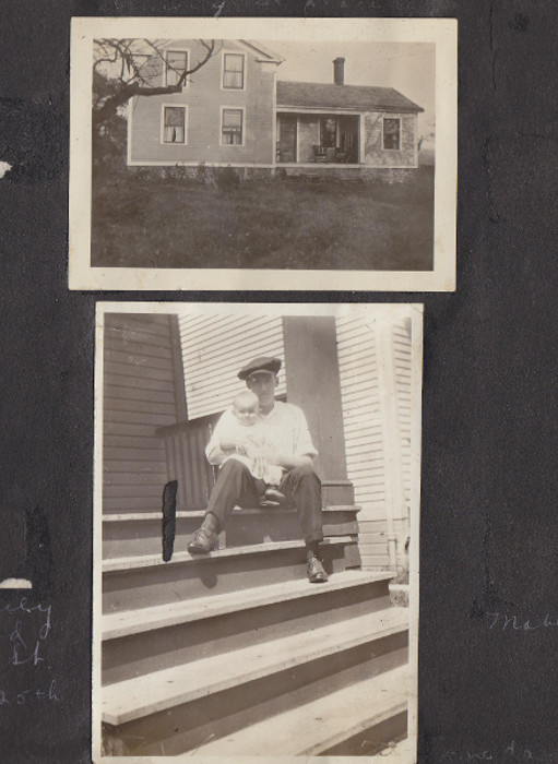 | Next two photos are: A page form the scrapbook of Olive B SWARTZ, who married Fred H VOSS of LaPorte, IN. Top: The Heinrich VOSS and Lena WOLTER VOSS home in LaPorte Bottom: Fred H and son Billy VOSS |