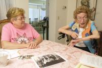 Dorothy Goodman listens to her mother, Ruby Drake (95 years young), daughter of Civil War veteran Harvey Holmes, speak about growing up in Indiana.