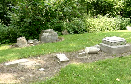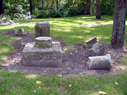 We followed our noses and came into the most beautiful site for a cemetery I've ever experienced. But our hearts were immediately broken; our hopes dashed. Vandals, using "tools" to ensure their wanton destruction, had totally destroyed the lovely pioneer cemetery. Some stones have been reduced to mere piles of rubble. The pictures speak for themselves. Shirley is attempting to find out who is responsible for the upkeep of Sharp Cemetery. Contact information will soon be posted.