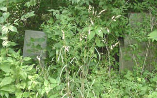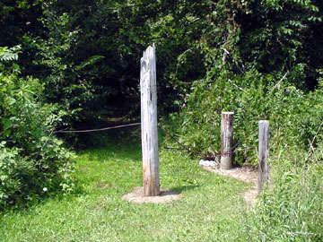 After looking for Sharp Cemetery for over an hour, we finally went back once again to this site on the side of the road. There were no signs or any other indication that it might be the entrance to a cemetery. Still we thought it could actually lead to a cemetery if one were brave enough to walk along the edge of a swampy area. We climbed over and crawled under the steel cable that blocked us and proceeded down the path.