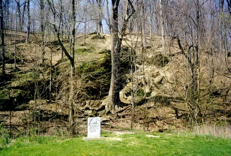 The Prophet, twin brother* of Chief Tecumseh and leader of the band of Indians at Prophet's Town while Tecumseh was absent, stood on an eminence during the battle and chanted to the Great Spirit. This is according to tradition. It is related that the Prophet, who had given his warriors assurance that the bullets fired by the white man would be harmless and that victory was certain for the red man, gave the signal for battle from what has become known as Prophet's Rock. With his chants, he is also said to have shouted encourage- ment to his followers. According to some reports, the voices of Gen. Harrison, commander of the white forces, and the Prophet could be clearly heard above the noise of the battle. This might seem doubtful as to the Prophet, considering the distance of the rock from the battlefield. Yet it might be remembered that one of his Indian names had the literal meaning of "Loud Voice." So perhaps it was possible for him to be heard. Prophet's Rock is described as an immense mass of conglomerate, high and picturesque, overlooking the battlefield. The rock has been worn into caves, grooves and arches by the eroding forces of the passing years. At the time of settlement, the area was popularly known as "Rattlesnake Den," because of the heavy infestation of these reptiles in its crevices and dens. For some years it was said to have been the custom of nearby early settlers to meet during the first warm days of spring for a "killing" when the snakes would come out to bask in the sun. A by-product of this procedure was a bountiful supply of rattlesnake oil, for which many benefits were claimed as a liniment, such as relieving or curing the "rheumatiz." The spot, located along the blacktop county road leading from Battle Ground southwest to Ind. 43, is owned by the Northwest Indiana conference of the Methodist church. In 1929, the late Dr. W. M. Reser, well known as a local historian, and Mrs. Reser had a stone marker placed beneath the historic ledge in the name of and for the General de Lafayette chapter, Daughters of the American Revolution. It was formally dedicated November 9 that year. A short drive has been graded into the plot, leading off the highway, for the convenience of visitors." Source: Lafayette Journal Courier, August 15, 1961 *Note: Tecumseh and the Prophet were not twins, Tecumseh was born in 1768, and his brother, the Prophet, in 1771. The Prophet was one of a set of triplets, but not a twin to Tecumseh. Source for this information is from the book A Sorrow in Our Heart-The Life of Tecumseh, 1992 by Allen Eckert. |